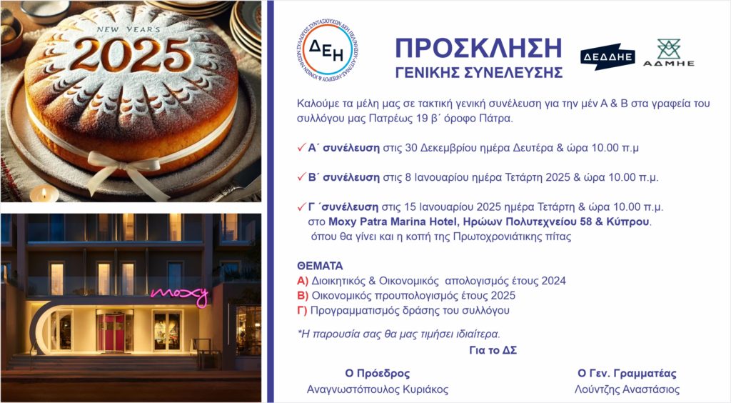 ΠΡΟΣΚΛΗΣΗ ΓΕΝΙΚΗΣ ΣΥΝΕΛΕΥΣΗΣ Post author:admin Post published:16 Δεκεμβρίου, 2024 Post category:Ανακοινώσεις Post comments:0 Comments FacebookTweetPin FacebookTweetPin You Might Also Like Τι σημαίνει στην πράξη το “ψαλίδι” ✂️ στις συντάξεις χηρείας! 31 Ιανουαρίου, 2022 ΕΝΕΡΓΕΙΑΚΟΣ ΣΥΝΤΑΞΙΟΥΧΟΣ ΤΕΥΧΟΣ 36 25 Νοεμβρίου, 2024 Ηλεκτρονικά το κλείσιμο ραντεβού για νοσοκομεία και ιατρούς 7 Απριλίου, 2022 Αφήστε μια απάντηση Ακύρωση απάντησηςCommentEnter your name or username to comment Enter your email address to comment Enter your website URL (optional) Αποθήκευσε το όνομά μου, email, και τον ιστότοπο μου σε αυτόν τον πλοηγό για την επόμενη φορά που θα σχολιάσω.
